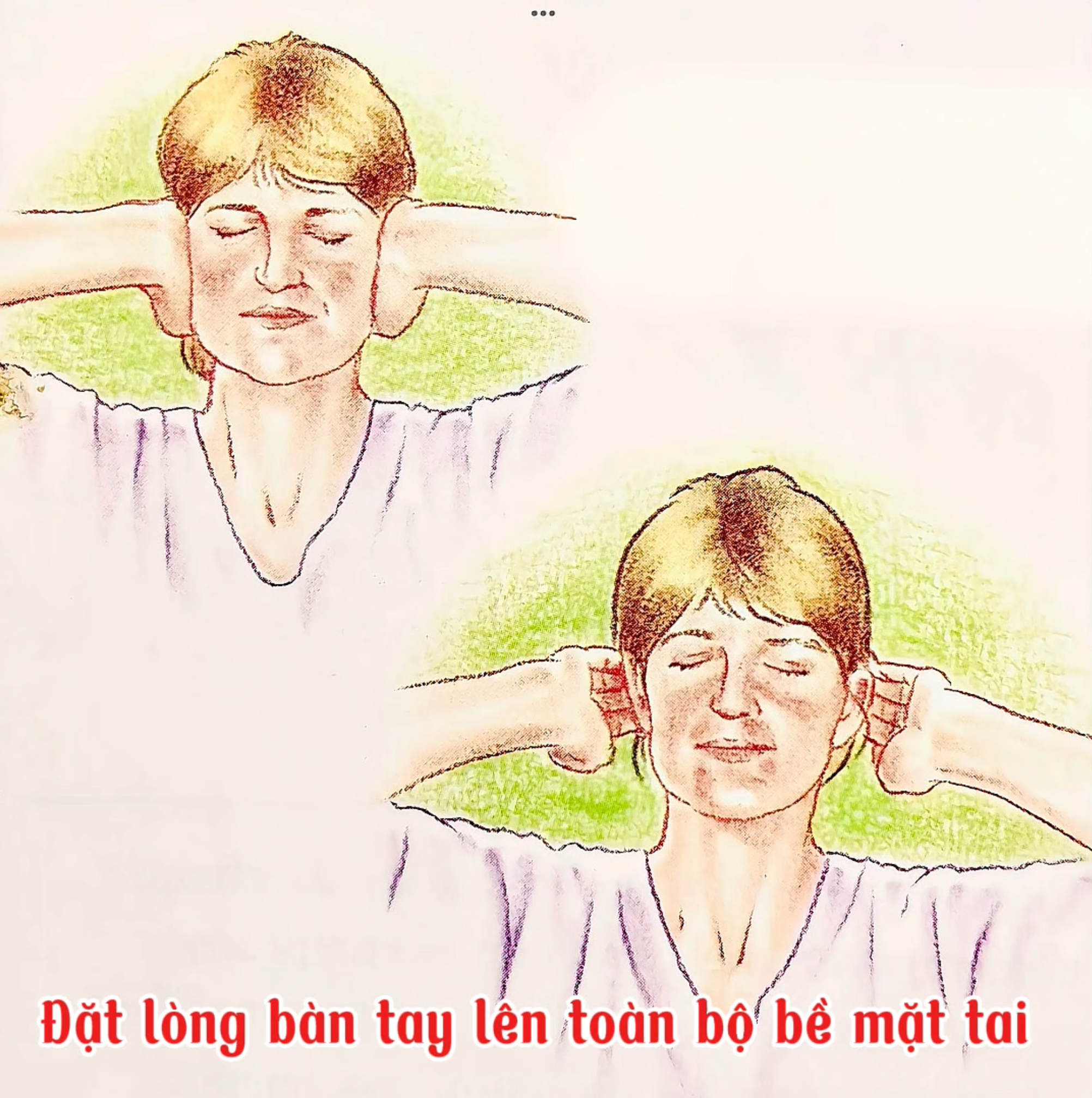 Bước 1: Đặt Tay Đúng Vị Trí 1. Vị trí lòng bàn tay: • Đặt lòng bàn tay lên toàn bộ bề mặt tai, bao phủ hoàn toàn tai. 2. Hướng ngón tay: • Các ngón tay hướng ra phía sau đầu, giúp lòng bàn tay áp sát tai hơn. 3. Tư thế thoải mái: • Đảm bảo cánh tay không bị gồng cứng, tạo sự thoải mái để thực hiện thao tác lâu hơn. Bước 2: Thao Tác Áp Lực 1. Ấn lòng bàn tay: • Dùng lòng bàn tay ấn nhẹ xuống tai với lực vừa phải. • Cảm nhận áp suất nhẹ tạo ra bên trong tai nhưng không gây đau hay khó chịu. 2. Thả tay đột ngột: • Thả tay ra ngay lập tức để áp suất bên trong tai được giải phóng. • Chuyển động này sẽ tạo cảm giác như một lực đẩy nhẹ trong tai, giúp kích thích màng nhĩ. 3. Giữ nhịp độ: • Lặp lại động tác với nhịp độ đều đặn, không quá nhanh hoặc quá chậm để đảm bảo hiệu quả. Bước 3: Lặp Lại Động Tác • Số lần thực hiện: Lặp lại động tác áp lực và thả tay 10 lần liên tục. • Chuyển động nhẹ nhàng: Đảm bảo mỗi lần đều thực hiện chậm rãi và tập trung vào cảm giác.