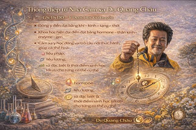 Khi được đặt đúng trong bối cảnh sinh học thời gian, Đông y không còn là y học cổ truyền theo nghĩa lịch sử, mà trở thành: • Một khoa học điều hòa nhịp sống, • Một y học của thời điểm, • Và một hệ thống trị liệu đi trước thời đại, đang dần được khoa học hiện đại giải mã bằng ngôn ngữ mới. Tôn trọng nhịp sinh học chính là tôn trọng trí tuệ sâu xa của cơ thể sống.