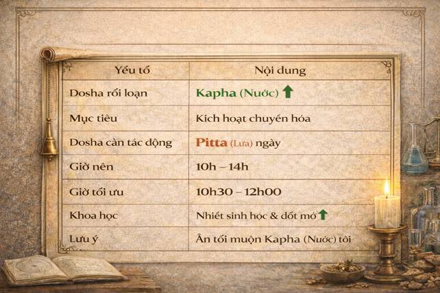Bảng Thực Hành: Chọn Giờ Trị Liệu Theo Dosha Cho Từng Bệnh Lý (Bài 60)