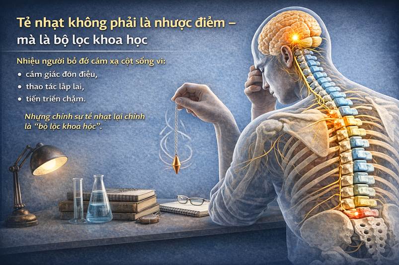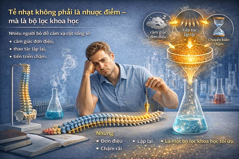 Cảm xạ cột sống không tìm “đốt đau”, mà tìm đốt lệch nhịp sinh học.