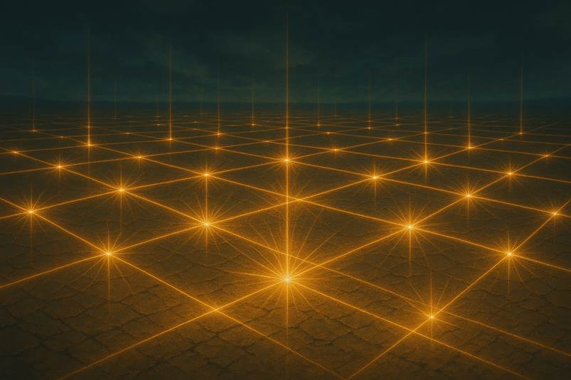 => Gọi là nút Hartmann (Hartmann Knot). Minh họa: Lưới ánh sáng chữ nhật đan phủ mặt đất, với các điểm giao phát sáng mạnh (Hartmann Knot)