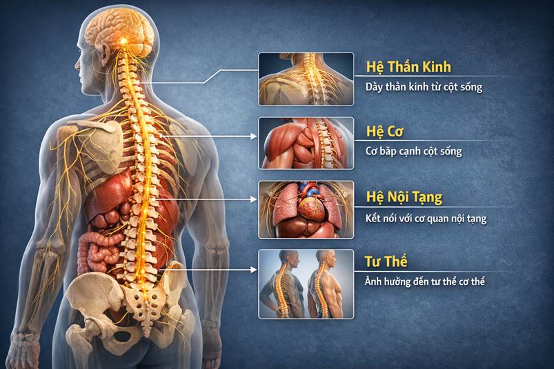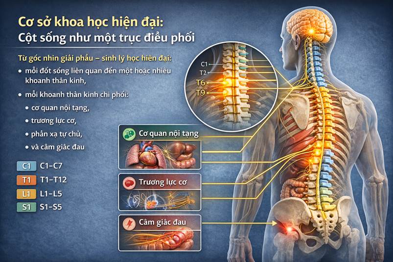 2. Cơ sở khoa học hiện đại: cột sống như một trục điều phối