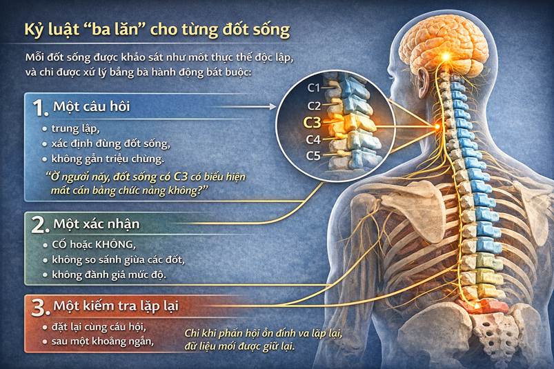 Cảm xạ cột sống không tìm “đốt đau”, mà tìm đốt lệch nhịp sinh học.