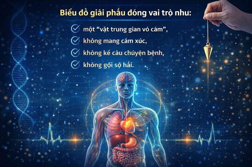 Biểu đồ giải phẫu trong cảm xạ y học không chỉ là hình ảnh trực quan để định vị cơ quan, huyệt đạo hay trường năng lượng—mà là ngôn ngữ chuẩn hóa giúp bảo vệ sự trung lập nhận thức của người thực hành.