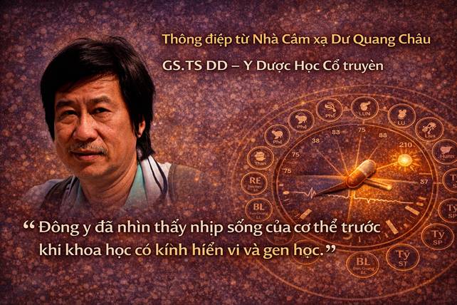 Ngày nay, khoa học hiện đại gọi mô hình này bằng những thuật ngữ mới như sinh học thời gian và liệu pháp theo thời điểm. Các nghiên cứu về nhịp sinh học, đồng hồ gen, hormone, enzyme và miễn dịch đã xác nhận một nguyên lý cốt lõi: Cùng một tác nhân sinh học, nhưng tác động khác nhau tùy thời điểm. Điều mà Đông y đã quan sát từ hàng nghìn năm trước — thông qua lâm sàng, kinh nghiệm và trực giác khoa học — nay được giải mã lại bằng: • Sinh lý học hiện đại, • Sinh học phân tử, • Và khoa học hệ thống. Nói cách khác, 12 kinh không phải là đường năng lượng trừu tượng, mà là bản đồ thời gian sinh học của chức năng sống, phản ánh: • Sự ưu thế luân phiên của các hệ cơ quan, • Khả năng hấp thu – thải trừ – phục hồi khác nhau theo từng khung giờ. Thông điệp từ Nhà Cảm xạ Dư Quang Châu GS.TS DD- Y Dược Học Cổ truyền
